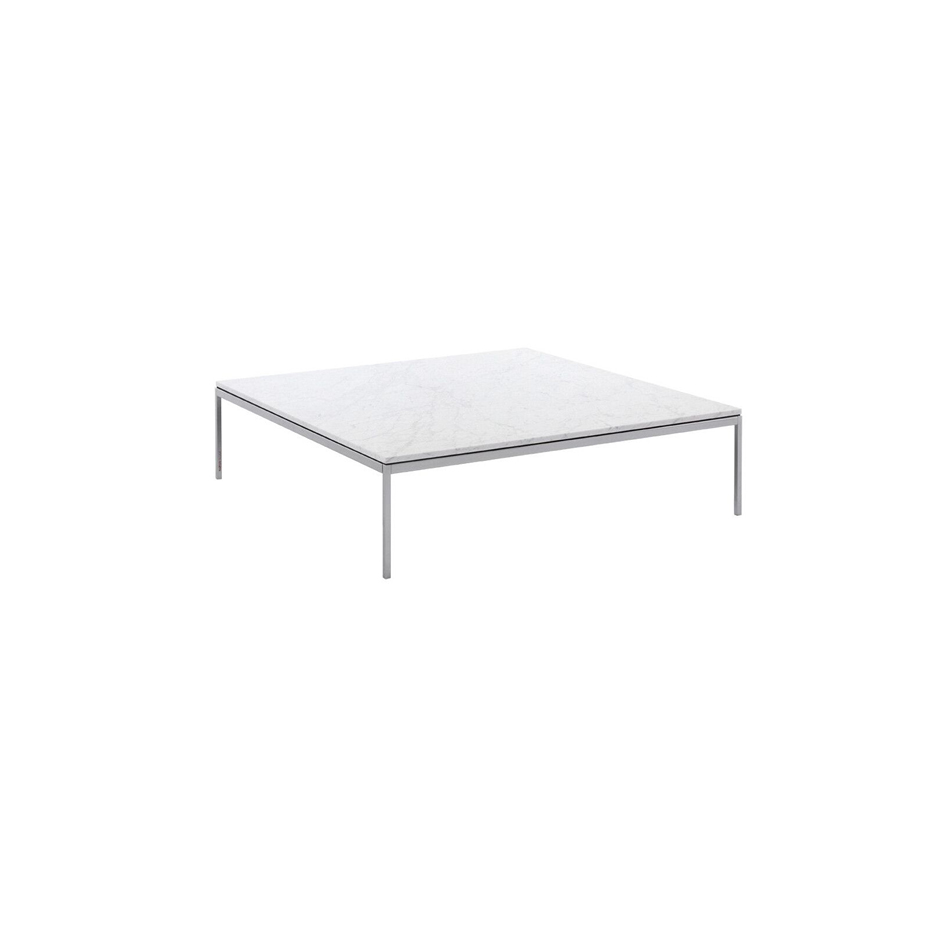 Les détails de la table basse Florence Knoll sont simples et créent une beauté claire avec des proportions parfaites. Elle arbore une présence épurée et géométrique qui reflète les apprentissages de Florence Knoll au près de Mies van der Rohe. Le plateau est en verre poli, marbre, noyer ou chêne. La base est en acier chromé poli et les patins de sol en nylon. Cette table basse existe en forme carrée ou rectangulaire.
